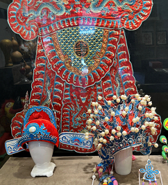 据王馆长介绍,仅碑林区便有78项,其中包括1项世界级非遗项目、3项国家级非遗项目。她生动地介绍了彩塑、结绳、葫芦雕刻、戏曲容妆、壁画修复、布艺、花馍等碑林区文化馆的非遗项目。神采各异的彩塑、精美绝伦的戏曲盔帽、巧夺天工的花馍……件件巧夺天工的非遗技艺都让在场的师生惊艳、赞美不绝。在讲解过程中,王馆长强调非遗技艺具有丰富的文化内涵和独特的民俗魅力,并指出非遗技艺当前最大的问题是缺少传承人。