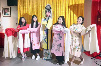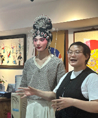 接下来,为了让师生跟直接真切体会到非遗的魅力,在文化馆戏曲专区,师生换上了戏服,由国家一级演员张福社老师和戏曲容妆传承人党莉莉老师亲自为大家教授戏曲表演的动作、技巧。