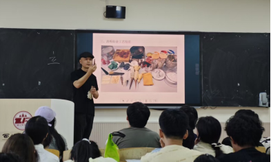张欣老师以古建筑微缩技艺为核心,揭秘了古建筑微缩中蕴含的营造法式;张钦老师则通过矿物颜料与沥粉工艺结合的古法沥粉技艺讲述,展现传统绘画的立体美学。师生通过近距离观察、互动体验,直观感受非遗工艺的“指尖魅力”。本次活动打破传统课堂边界,通过“非遗传承人进高校”的形式,不仅深化了学习者对传统民俗工艺的具象认知,又深切体悟非遗背后的工匠精神和中华优秀文化根脉。