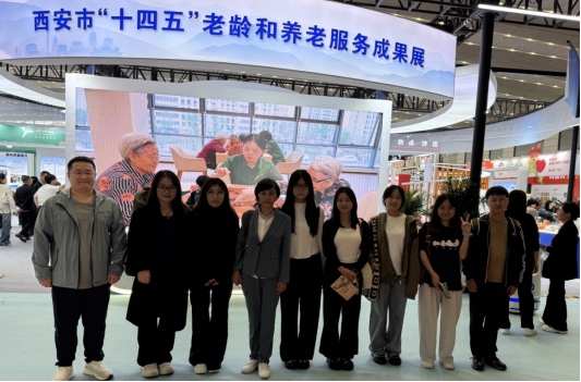 为深化社会工作专业研究生养老服务实践认知,搭建代际交流与养老产学研对接平台, 2025年9月19日,在太阳成集团tyc33455cc离退处王云副处长的组织带领下,社会工作专业硕士生导师赵晓风副教授携十名研究生,与部分退休教职工前往西安国际会展中心,参观第三届西安国际养老产业博览会。