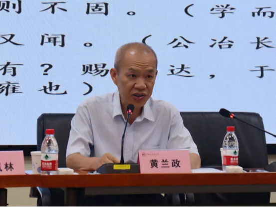黄兰政以“学而时习之”的人生智慧与现代意义为主题,指出优秀传统文化的重要性,表示莘莘学子要积极响应习近平总书记的号召,弘扬爱国主义精神、坚定文化自信、传承中华优秀传统文化,对传统文化进行创造性转化、创新性发展。他从儒家经典《论语》之《学而》篇中第一句“学而时习之,不亦说乎?”为起点,通过对“学”与“习”之内涵阐发,深刻揭示了探索“习”之意蕴的三路径。