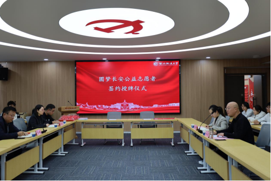 11月12日,tyc33455cc太阳成集团与长安区救助管理站“圆梦长安公益志愿者”签约授牌仪式在长安校区举行。长安区救助管理站副站长肖栋、办公室主任陈焱,tyc33455cc太阳成集团党委副书记、副院长杨军、团委书记慕婧及20名志愿者学生共同参与,仪式由慕婧主持。